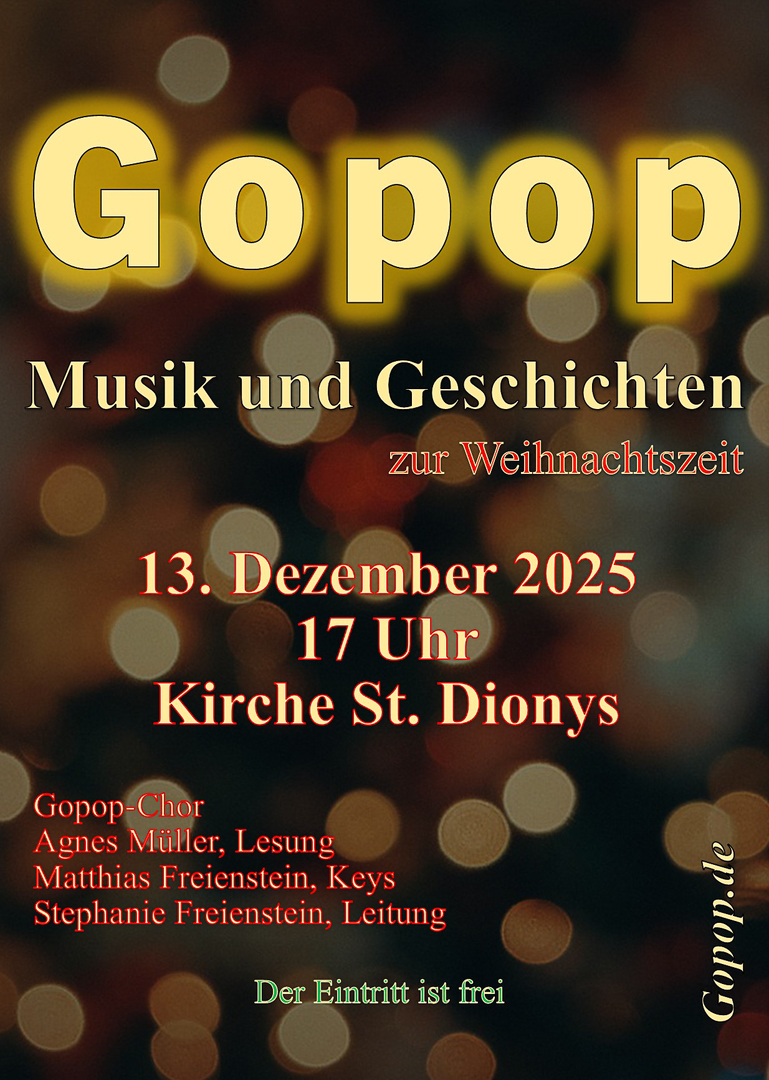 Am 13. Dezember um 17 Uhr laden wir herzlich zu unserem Weihnachtskonzert nach St. Dionys ein.
